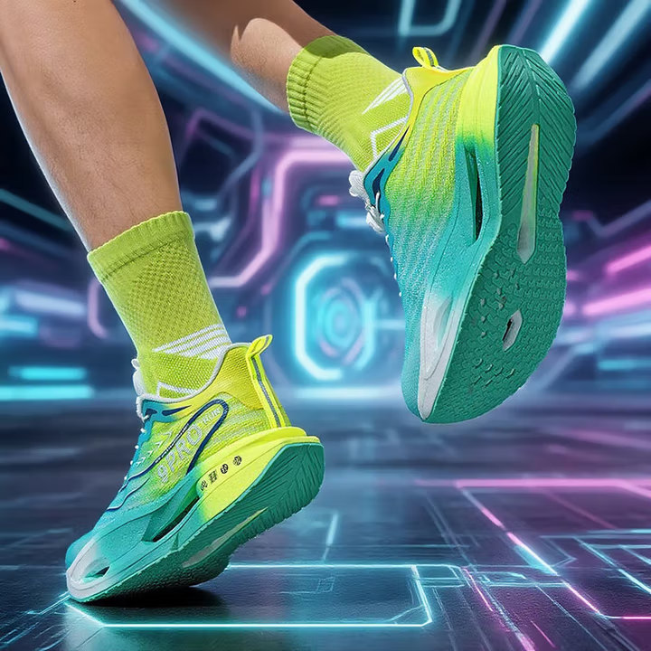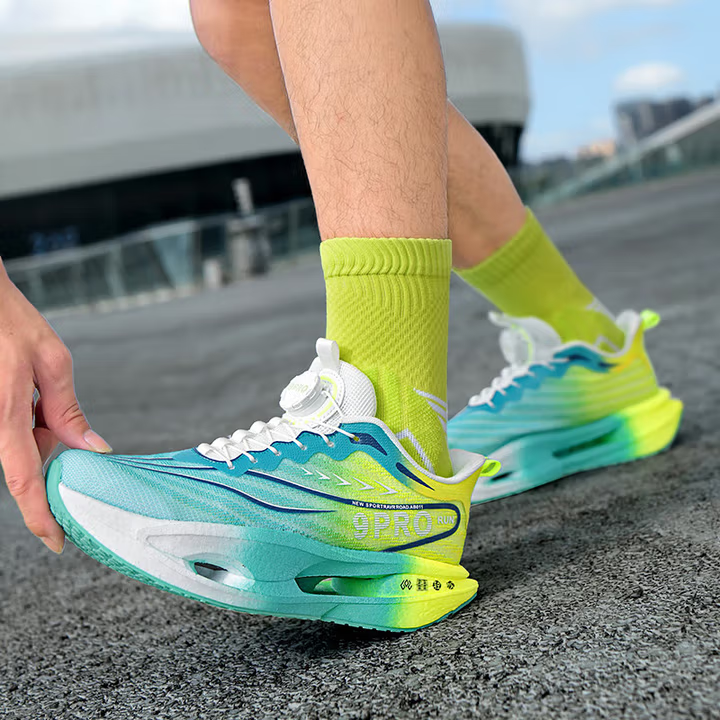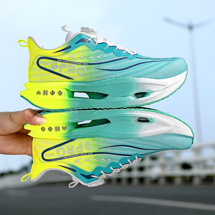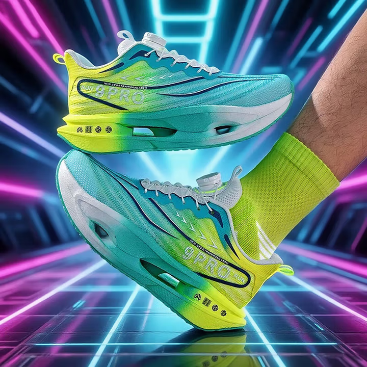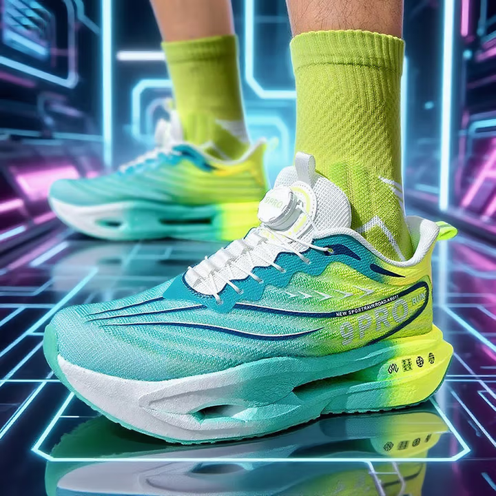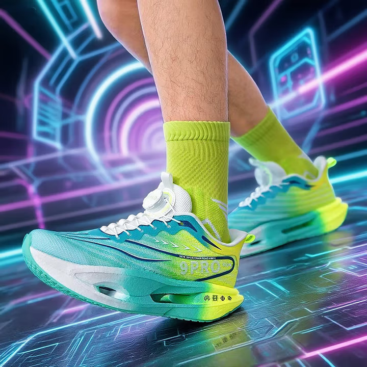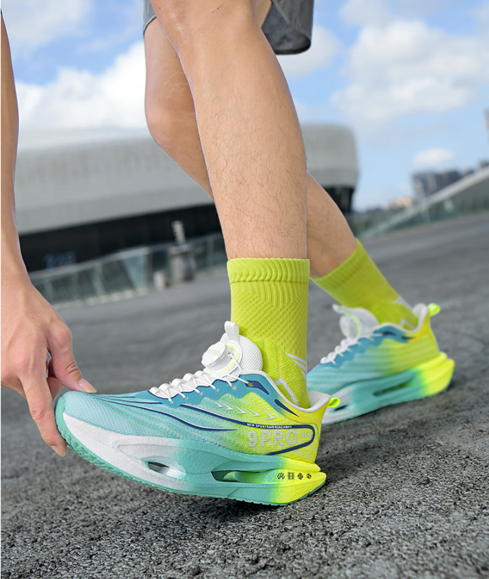Carbon board running shoes, sports double mesh shoes, ultra light shock-absorbing running shoes, 8pro double mesh ultra light high elasticity grass green