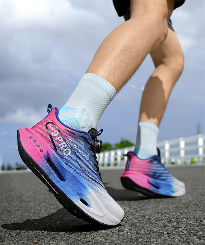 Carbon board running shoes, sports double mesh shoes, ultra light shock-absorbing running shoes, 8pro double mesh ultra light high elasticity rose pink