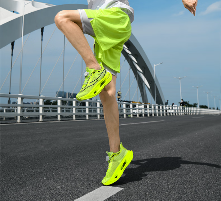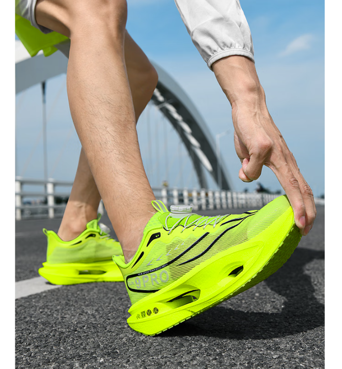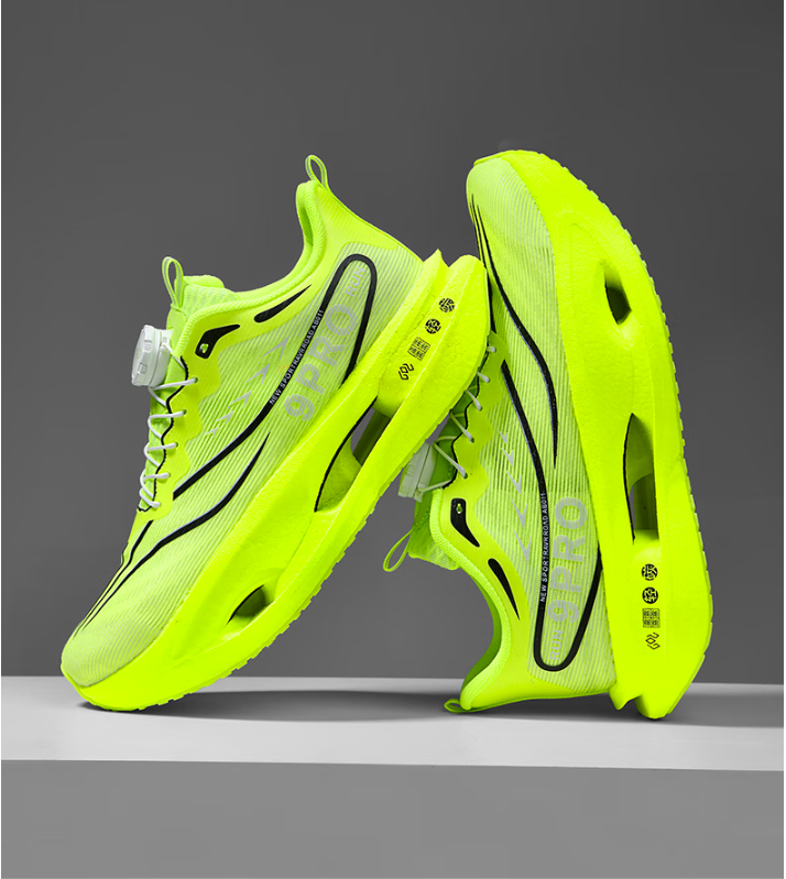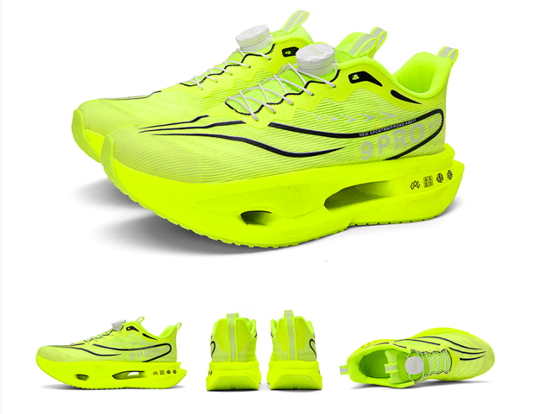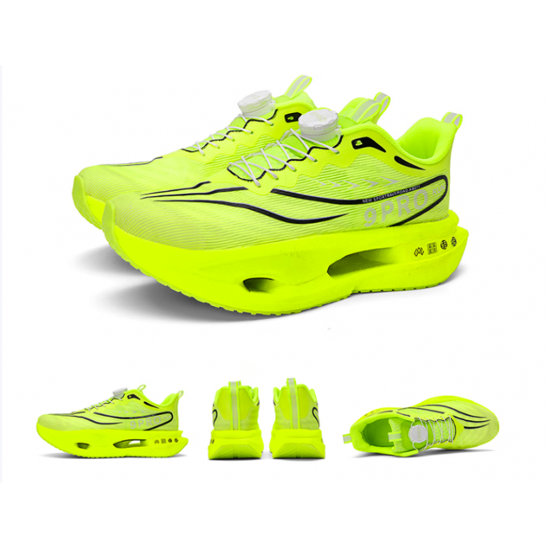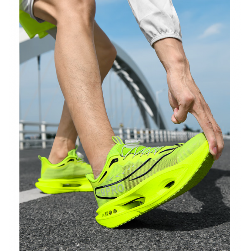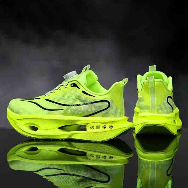 Carbon board running shoes autumn and winter rotating buckle sports double mesh shoes ultra light shock absorption+ultra light carbon board+rotating buckle fluorescent green