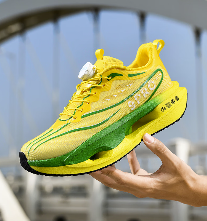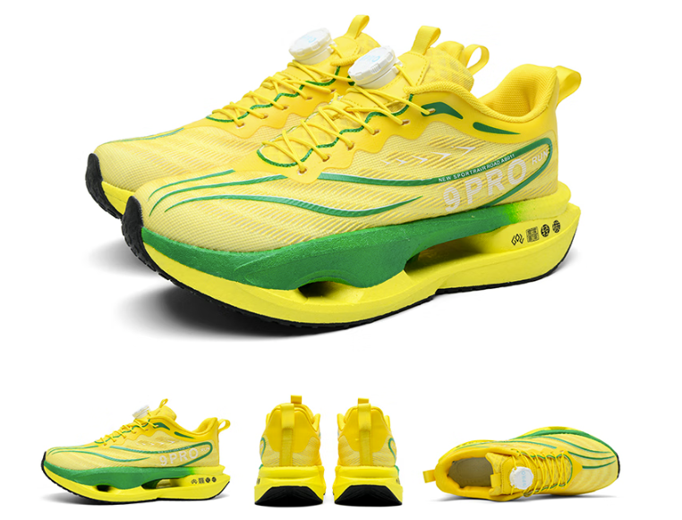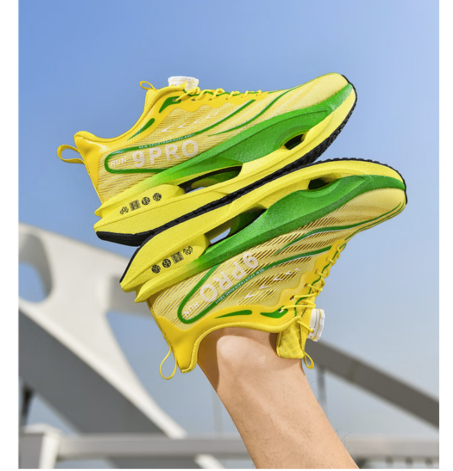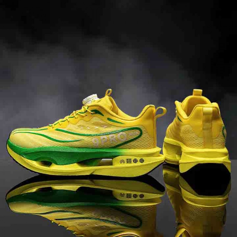 Carbon board running shoes autumn and winter rotating buckle sports double mesh shoes ultra light shock absorption+ultra light carbon board+rotating buckle Lemon yellow