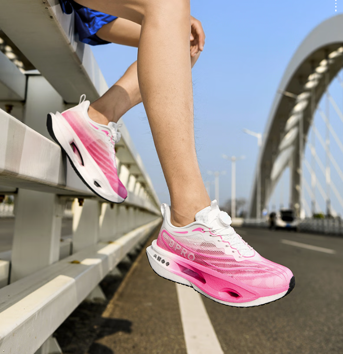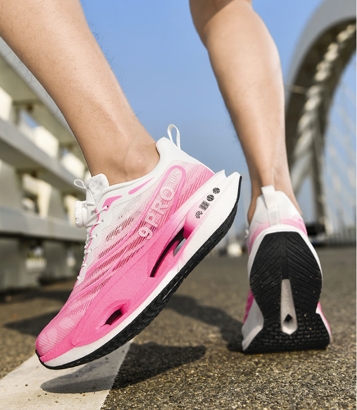 Carbon board running shoes autumn and winter rotating buckle sports double mesh shoes ultra light shock absorption+ultra light carbon board+rotating buckle cherry blossom pink