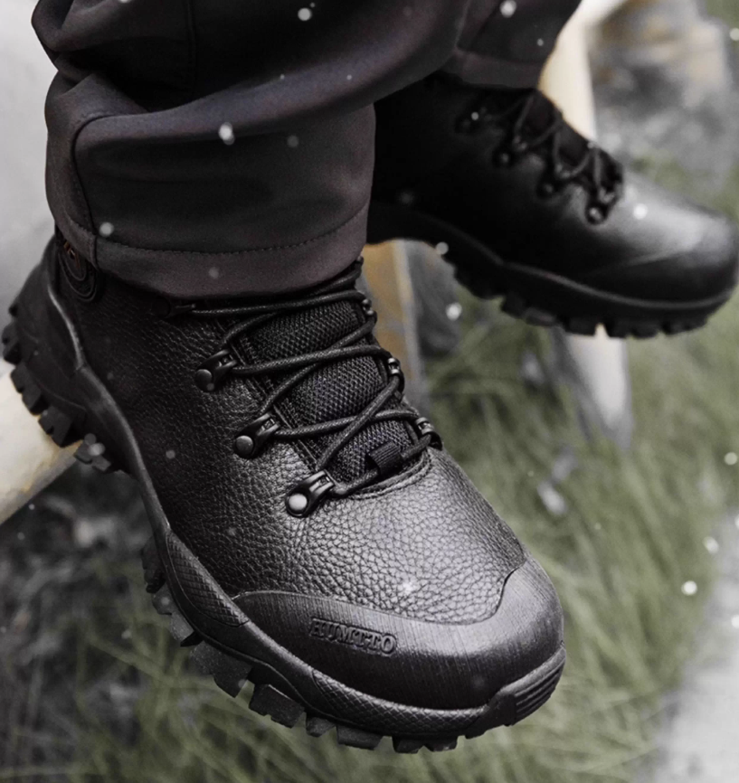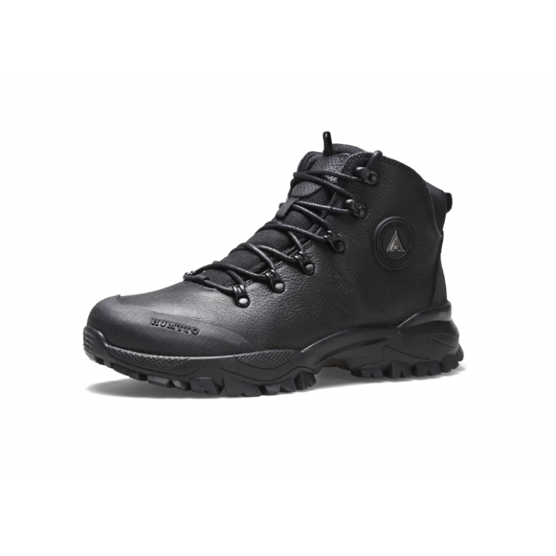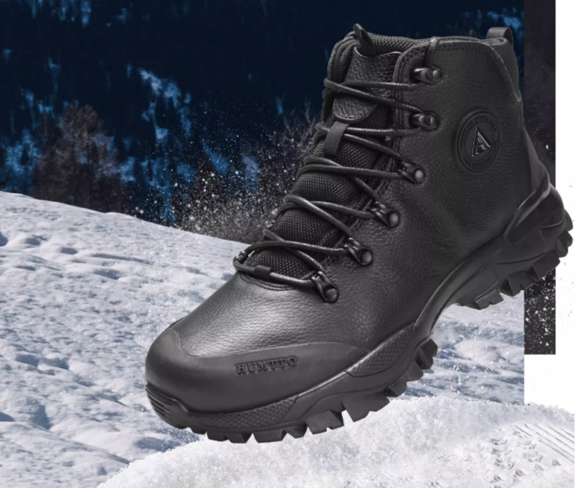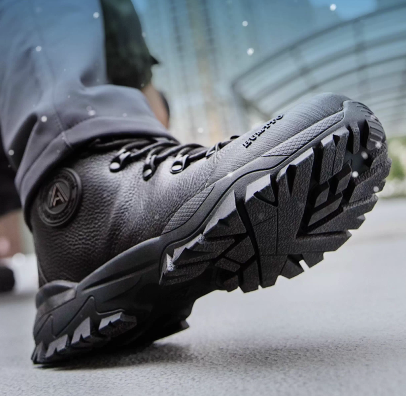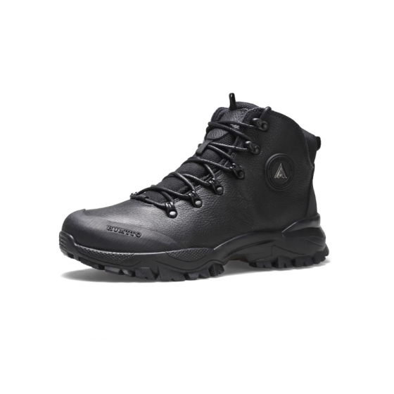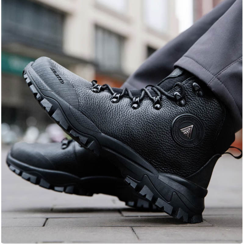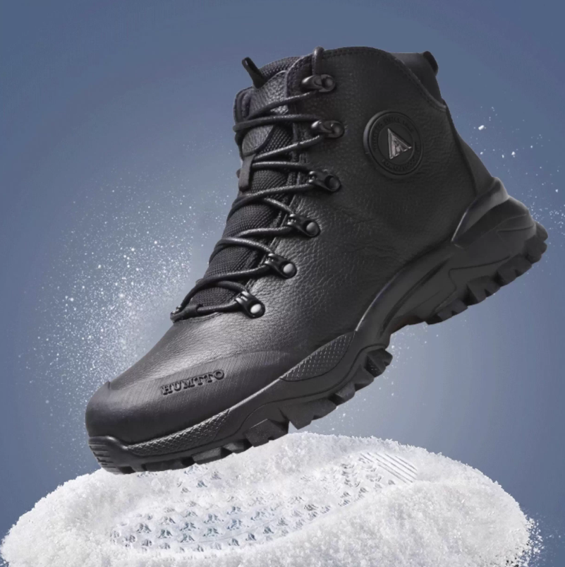 Outdoor hiking shoes men's high top winter cowhide waterproof hiking anti slip wool warm cotton shoes snow boots black