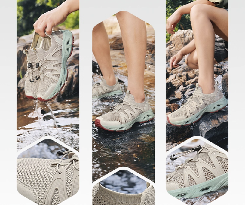 Outdoor river tracing shoes for men and women, summer breathable hiking sports beach sandals, quick drying anti slip water wading shoes cyan