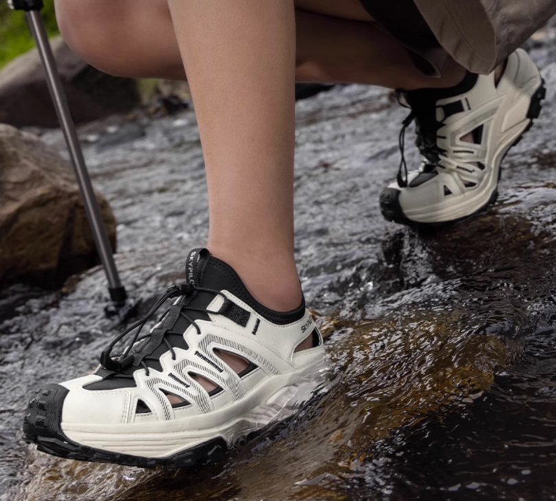 Outdoor river tracing shoes, lightweight and quick drying summer sports sandals, breathable and non slip, water wading beach shoes white