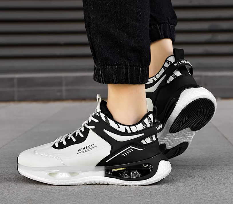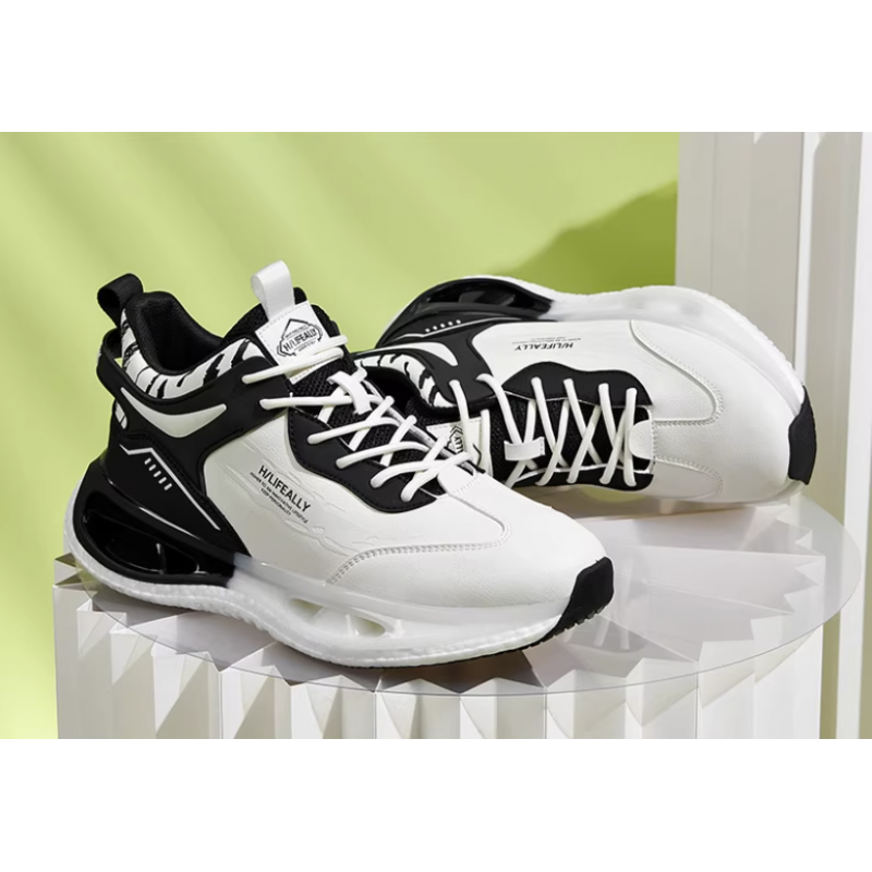 Men's shoes, sports shoes, autumn and winter leather, lightweight shock-absorbing running shoes, basketball running shoes black