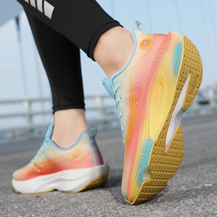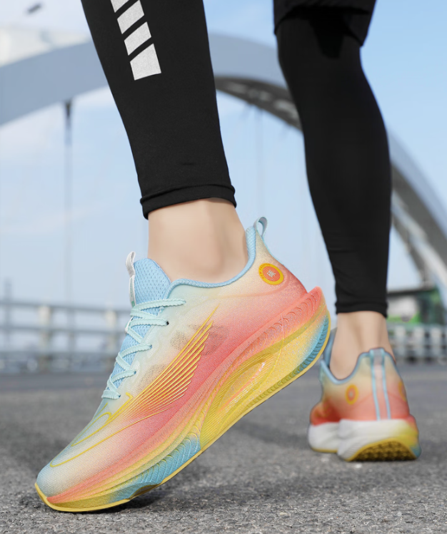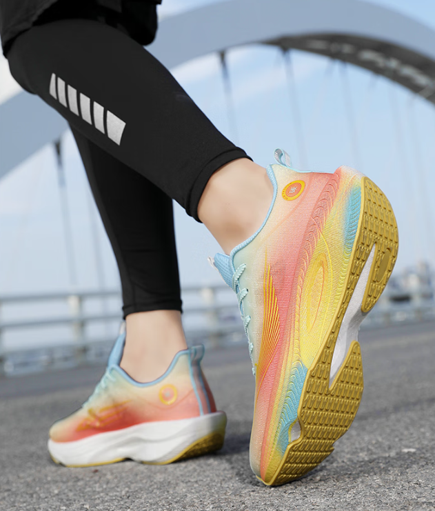 Women's running shoes, breathable full palm carbon plate soft sole, lightweight shock-absorbing sports shoes+ultra light carbon plate Illusionary Red
