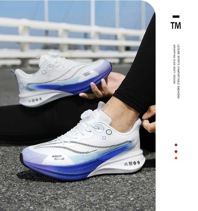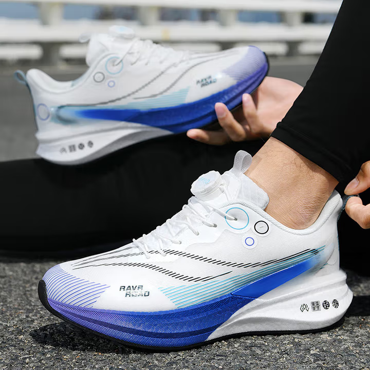 Women's summer full-length carbon plate running shoes with rotating twist buckle sports shoes blue
