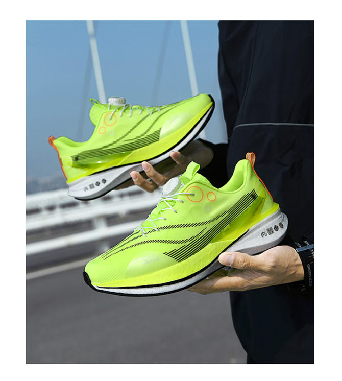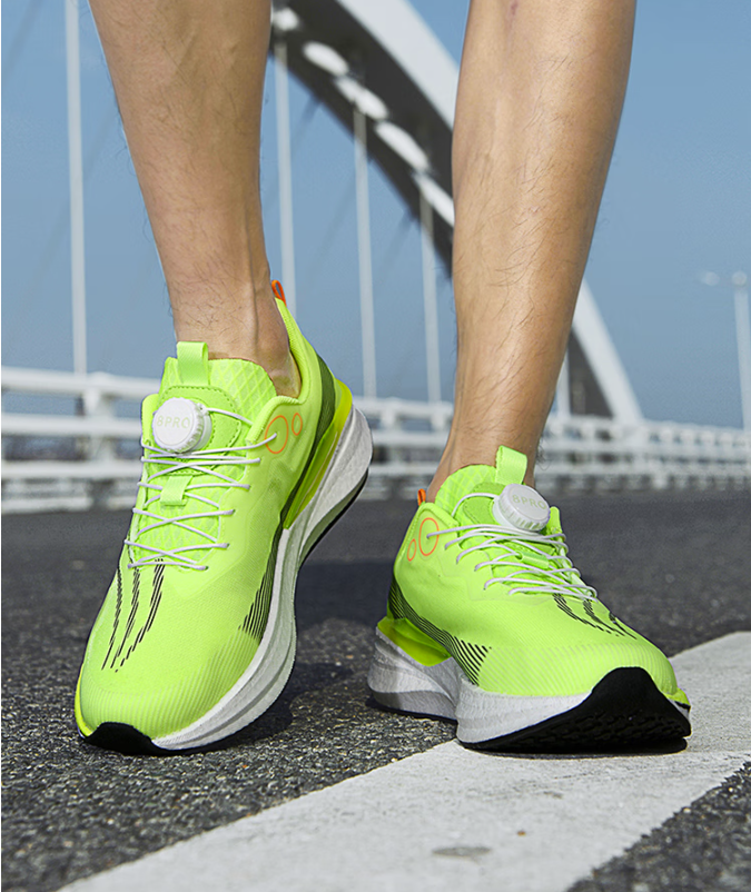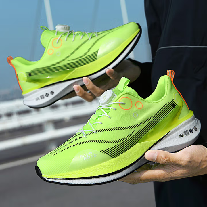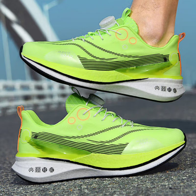 Women's summer full-length carbon plate running shoes with rotating twist buckle sports shoes green