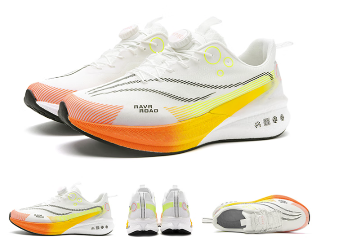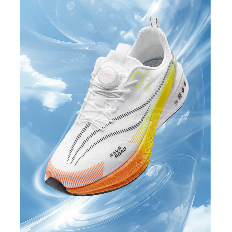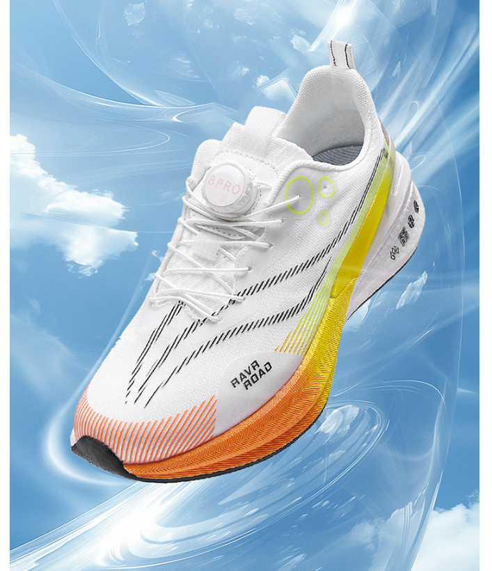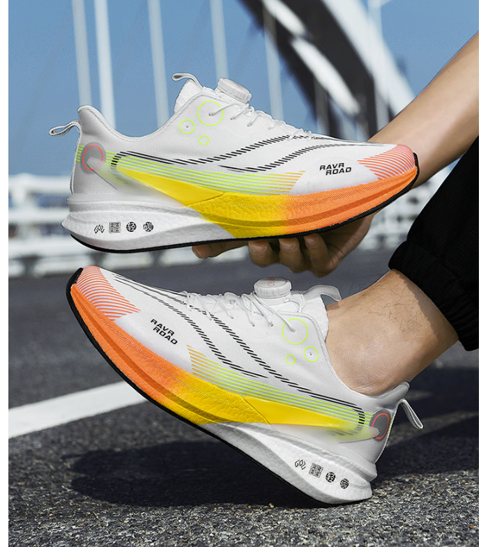 Women's summer full-length carbon plate running shoes with rotating twist buckle sports shoes White Orange
