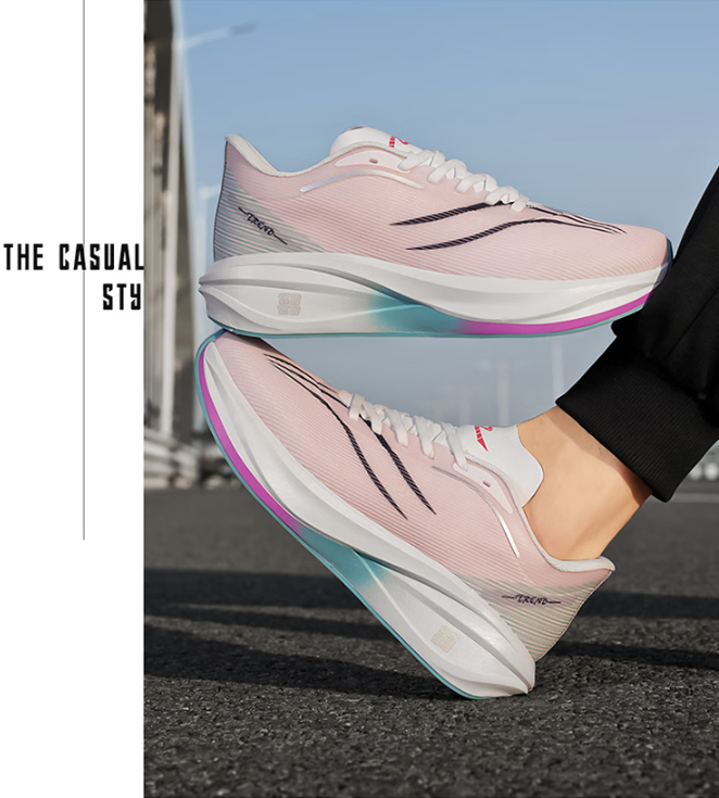 Carbon board running shoes racing professional sports competition ultra light rebound running shoes sports shoes Colorful Pink