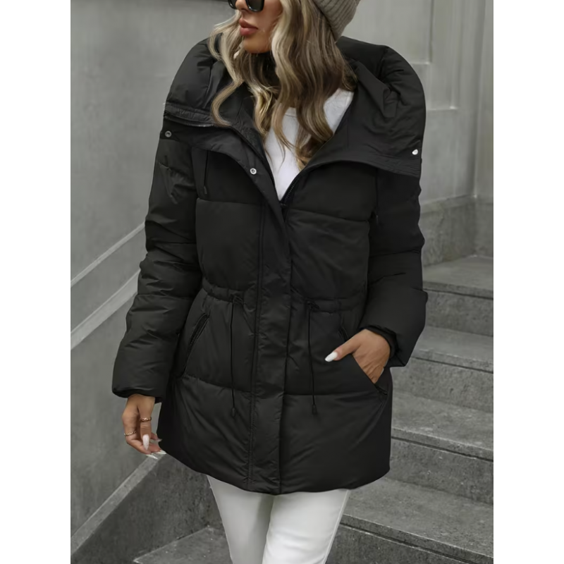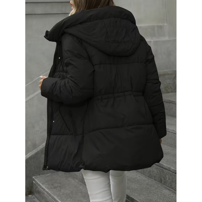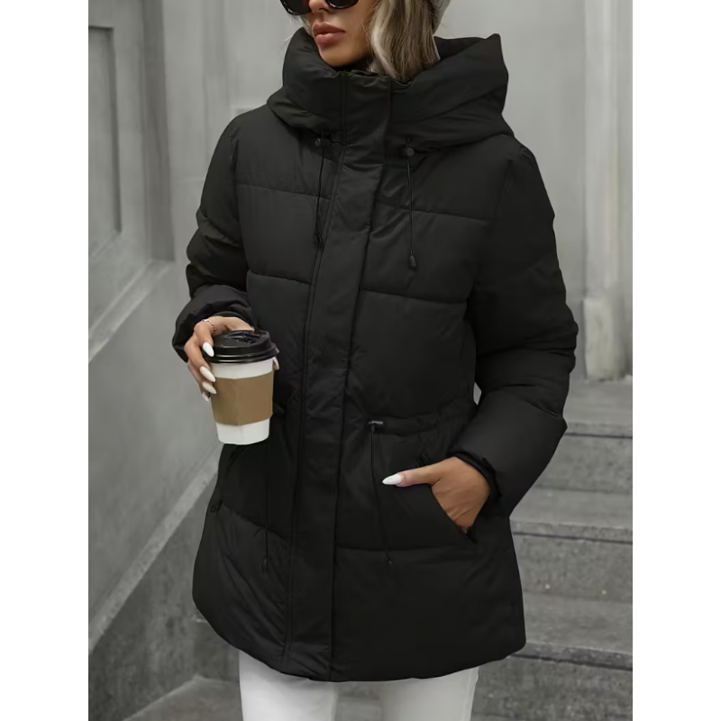 Women'S Winter Quilted Hooded Jacket with Adjustable Waist & Full-Zip Closure - Insulated Puffer Coat, Machine Washable, 5 Color Options