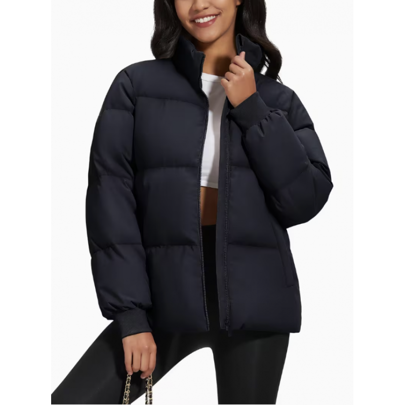 Women'S Puffer Jacket Ribbed Cuffs Stand Collar Warm Padded Quilted Zip Up Coat With Side Pockets Lightweight Windproof Winter Coat For Ski Travel Streetwear