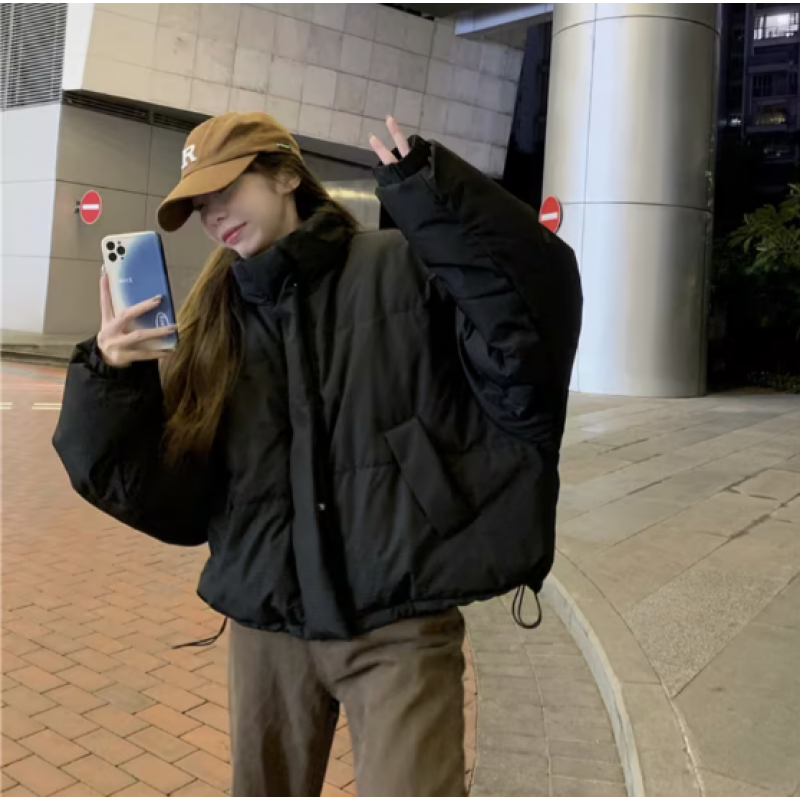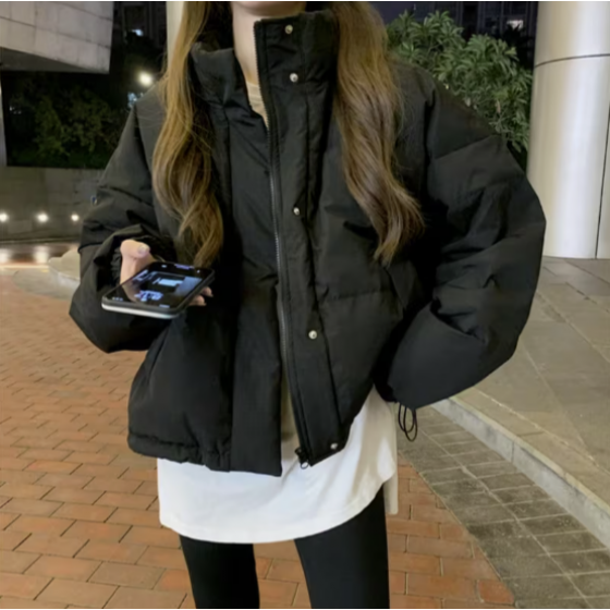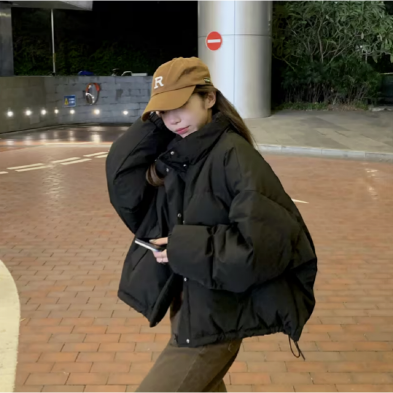 Women'S 2025 Winter Korean Style Oversized Loose-Fit Jacket - Soft Stand Collar Puffer Coat with Full-Zip Closure, Long Sleeve Casual Outerwear, Solid Color (Light Shown) for Everyday & Formal Wear, Warm Insulating Coat for Cold Weather