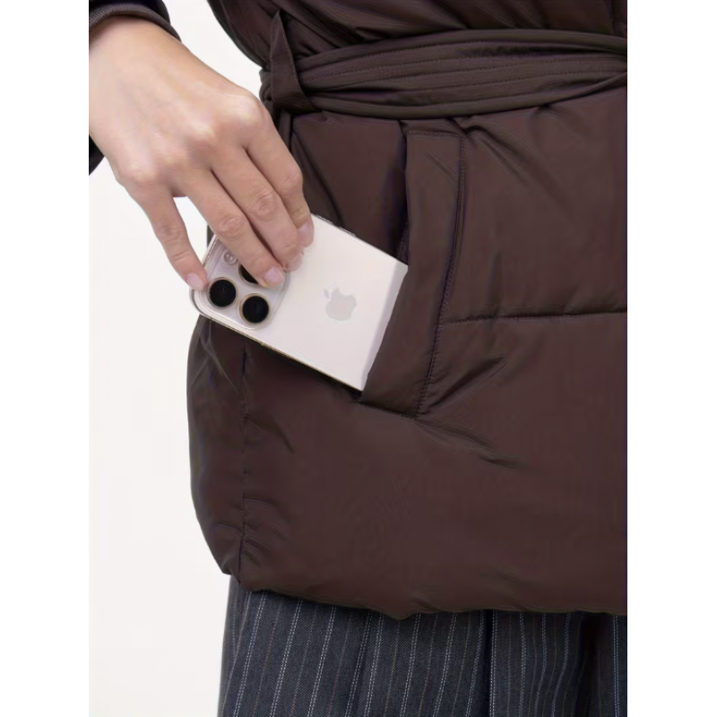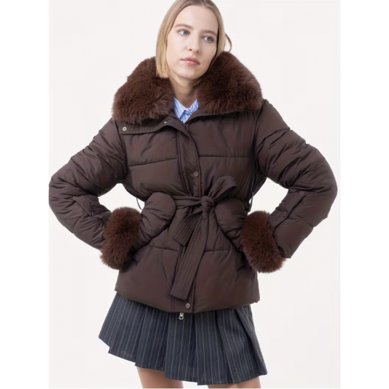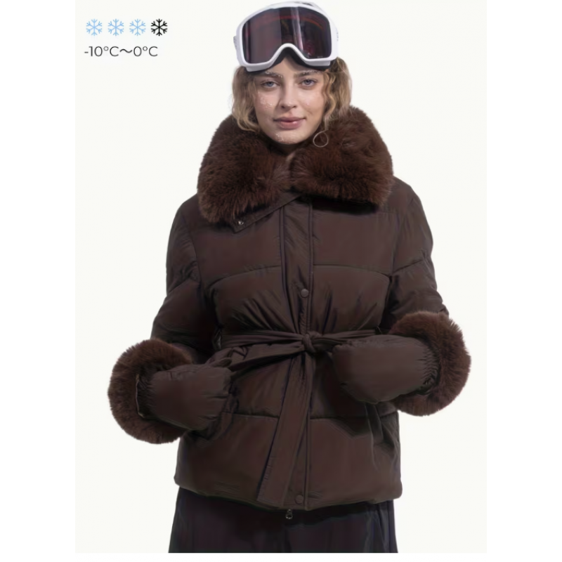 Women's faux fur collar jacket detachable, classic hooded coat with adjustable belt, winter-warm thickened Women's jacket, ladies' winter outerwear.