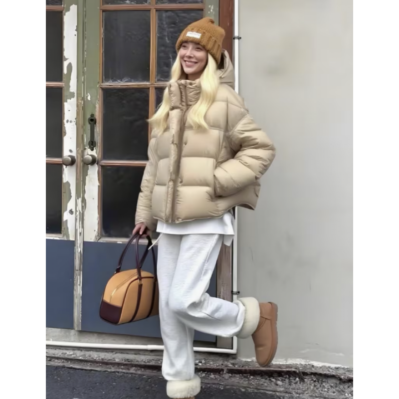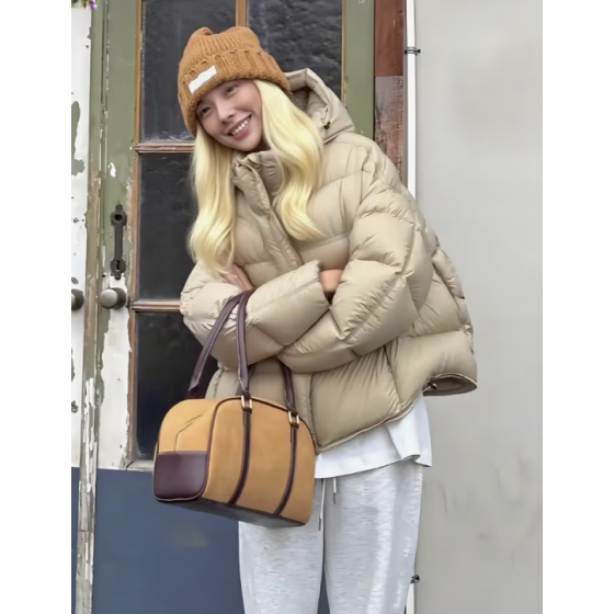 Jacket with Hood - Thick Winter Coat, Olive Green Vest, Machine Washable Cold Weather Outerwear for Skiing, Snowboarding & Outdoor (No Belt, Straight Fit)
