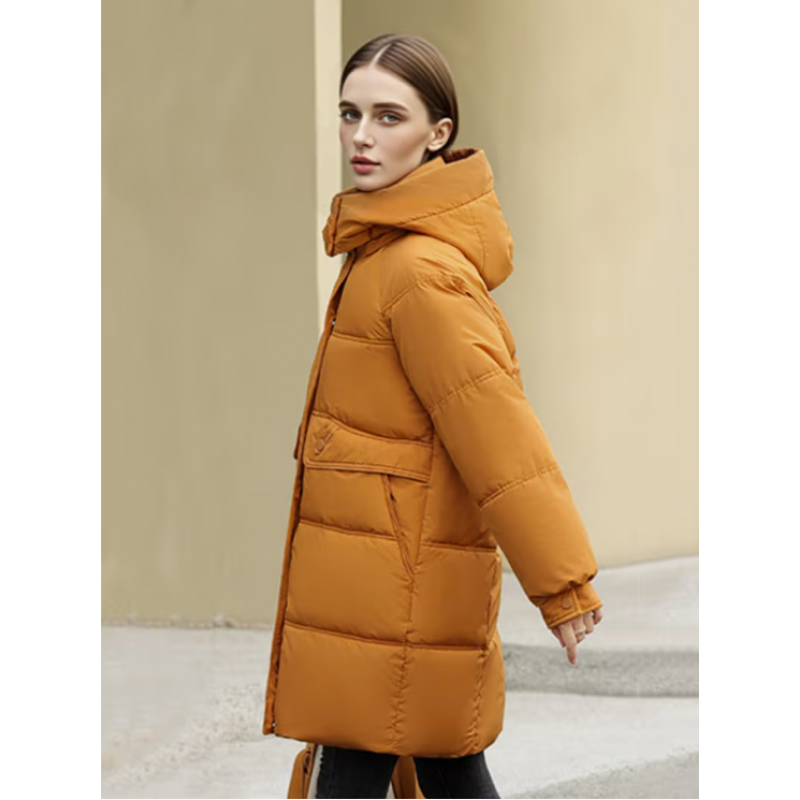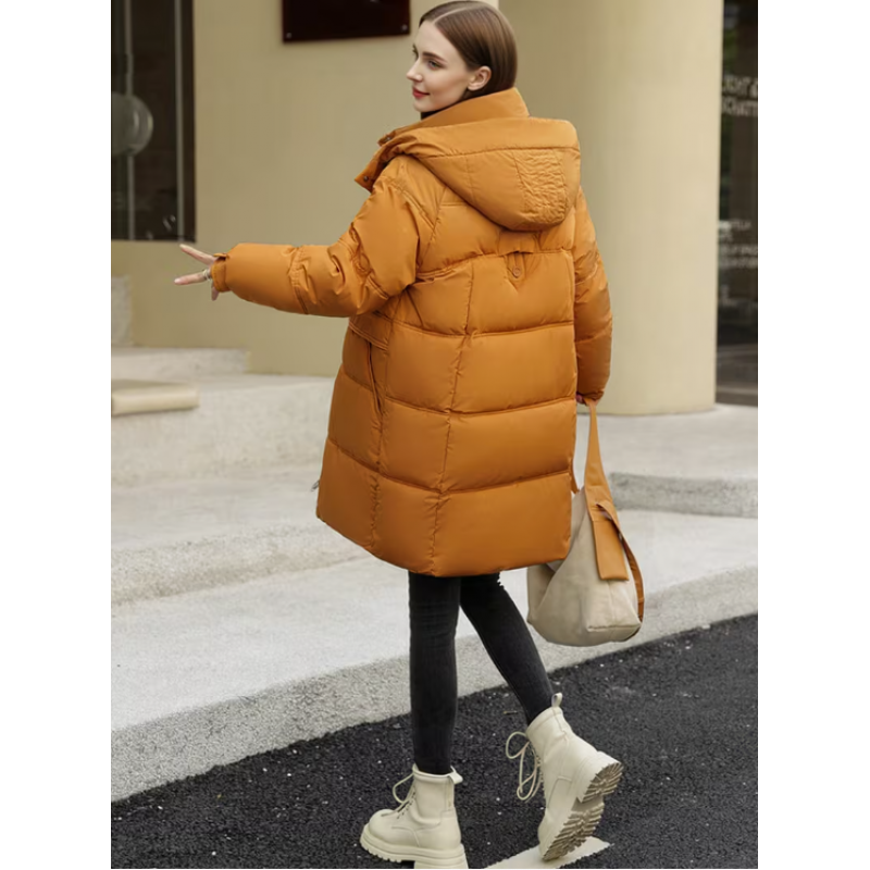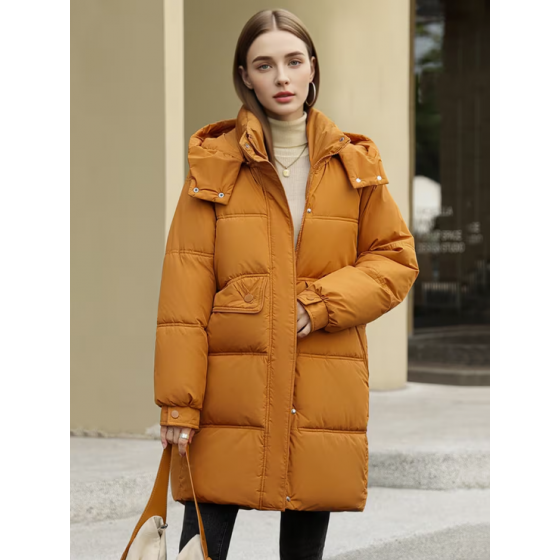 Women'S Cozy Mid-Length Hooded Jacket - Thick Winter Coat with Pockets, Casual Style, Solid Color, Long Sleeves, Perfect for Cold Weather Comfort, Winter Coat