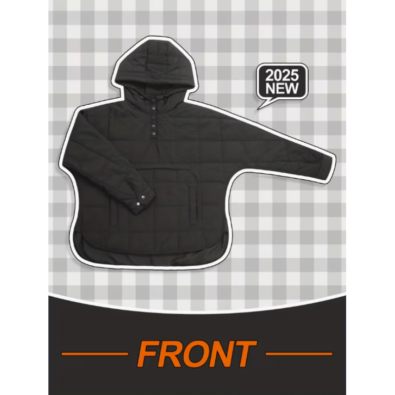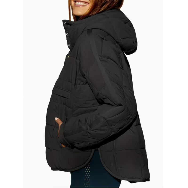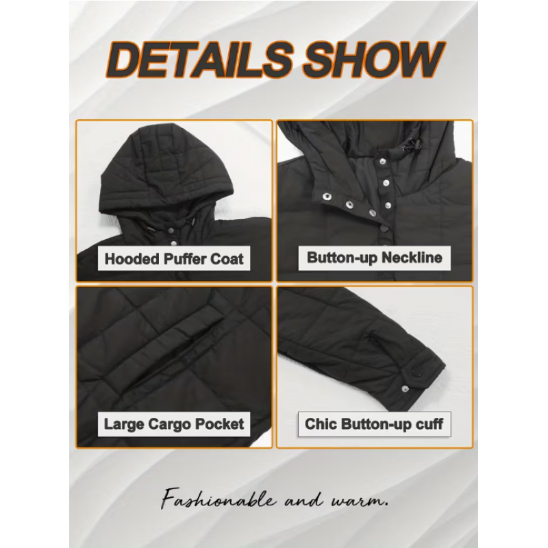 Women'S Oversized Hooded Down Jacket - Lightweight Warm Winter Coat with Full-Zip Front, Full-Length Zipper Closure, Button Closure Hood, Machine Washable Cold Weather Outerwear For Travel, Everyday